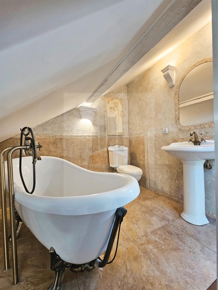 Ground floor: living room with fireplace, open kitchen, pantry, toilet, walk-in closet, boiler room, garage. First floor: 3 bedrooms, walk-in closet, bathroom with bathtub and shower. Attic: open space with bathroom. ADDITIONAL INFORMATION: